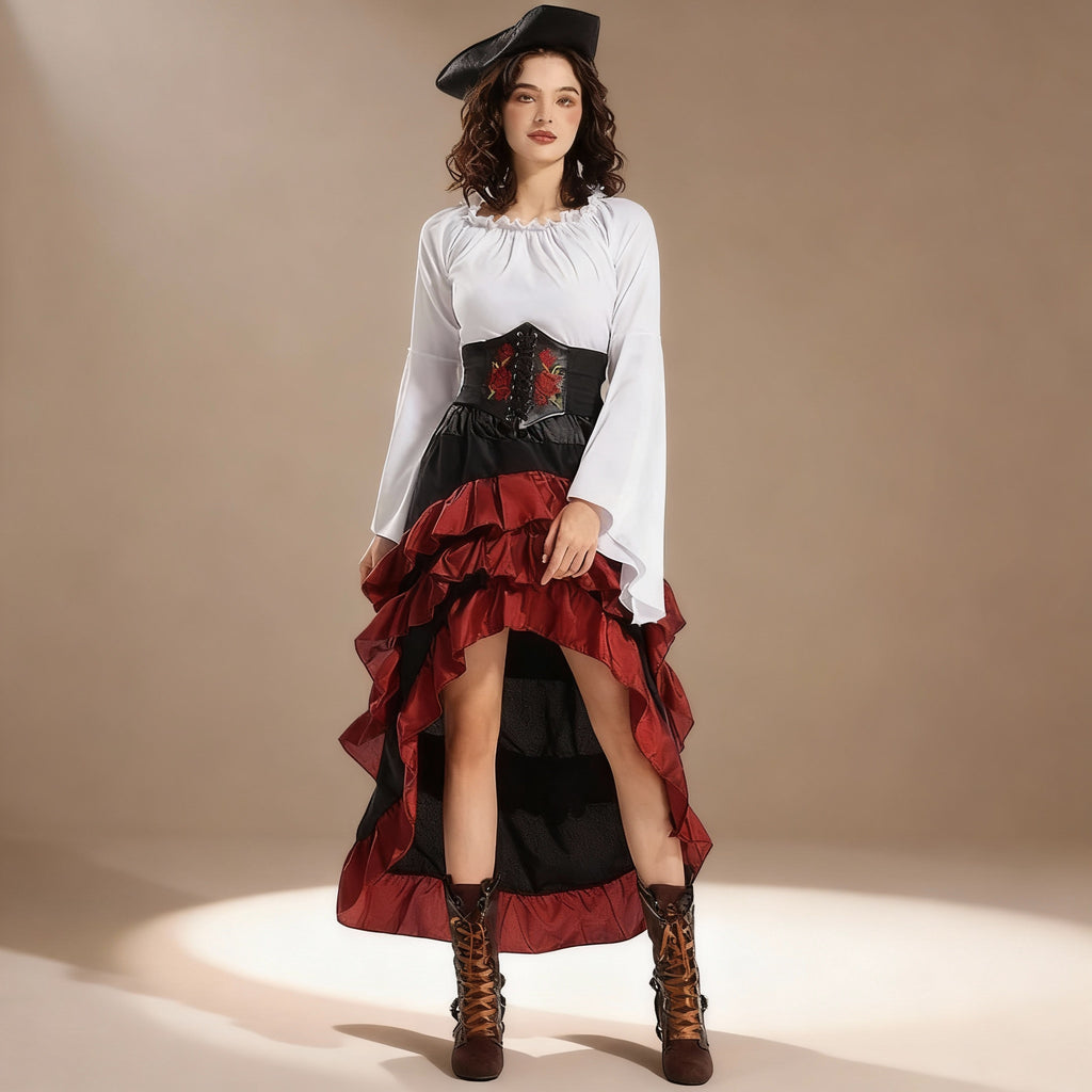 déguisement pirate femme : après ces contrastes marqués, montez en séduction avec le Déguisement Pirate Robe Femme Fatale, plus glamour et cintré.